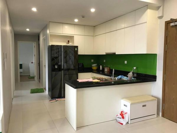 Không gian bếp của căn hộ được thiết kế mở, khi nhìn tổng thể không gian sẽ rộng rãi hơn.