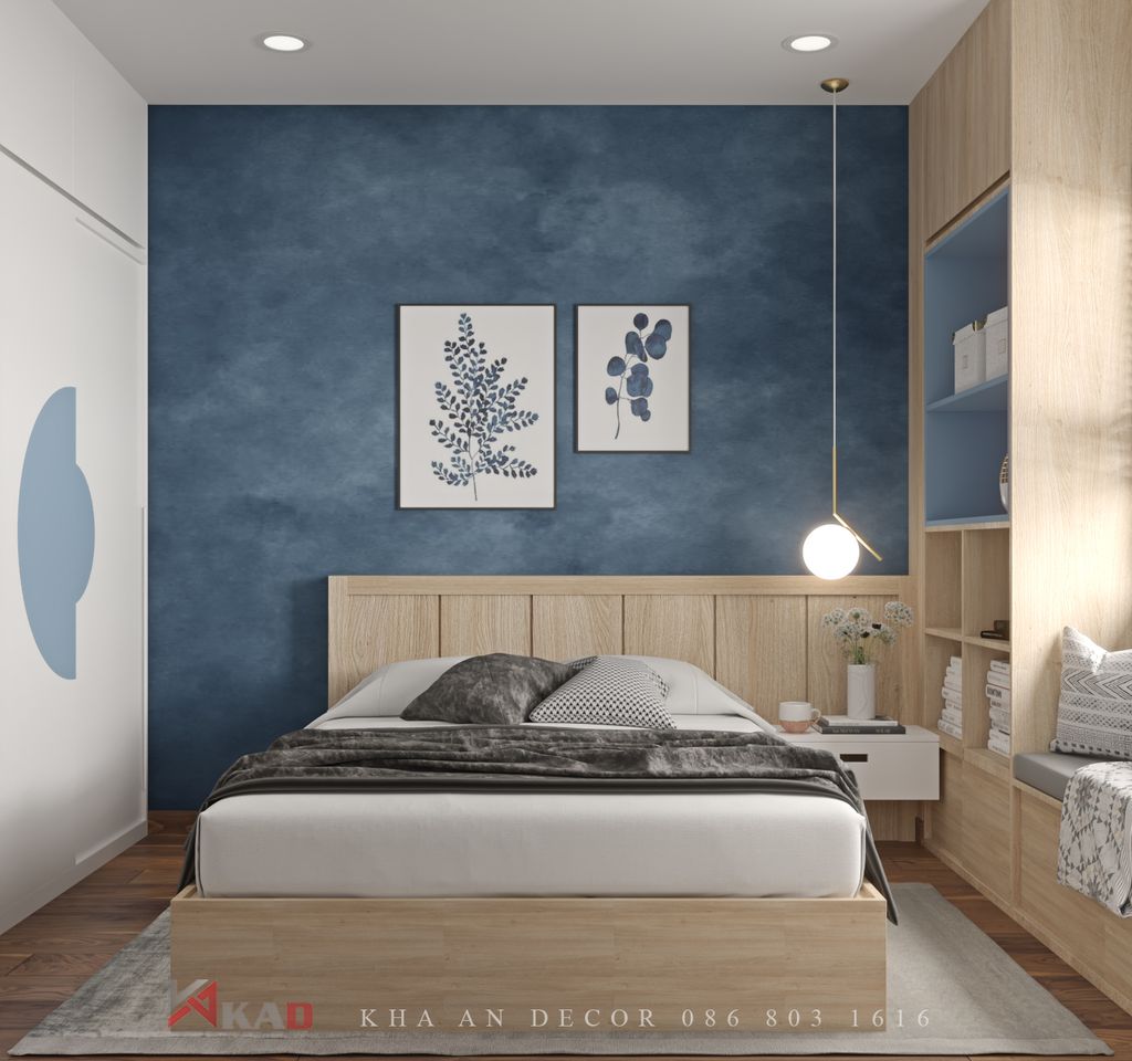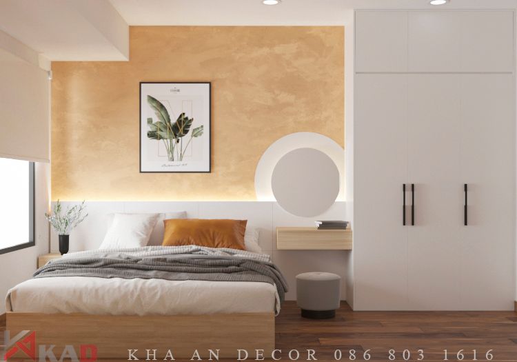 Lấy điểm nhấn là mảng tường đưọc sơn hiệu ứng, căn phòng đã trở nên sinh động hơn, cùng với đó bệ cửa sổ là nơi vô cùng " chill " để đọc sách hoặc nghe nhạc.